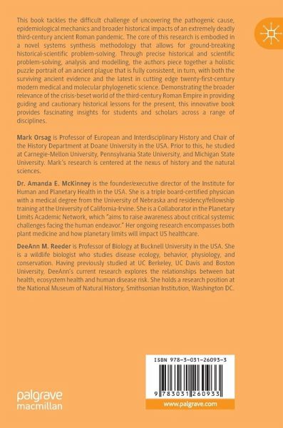 This book tackles the difficult challenge of uncovering the pathogenic cause, epidemiological mechanics and broader historical impacts of an extremely deadly third-century ancient Roman pandemic. The core of this research is embodied in a novel systems synthesis methodology that allows for ground-breaking historical-scientific problem-solving. Through precise historical and scientific problem-solving, analysis and modelling, the authors piece together a holistic puzzle portrait of an ancient plague that is fully consistent, in turn, with both the surviving ancient evidence and the latest in cutting edge twenty-first-century modern medical and molecular phylogenetic science. Demonstrating the broader relevance of the crisis-beset world of the third-century Roman Empire in providing guiding and cautionary historical lessons for the present, this innovative book provides fascinating insights for students and scholars across a range of disciplines.