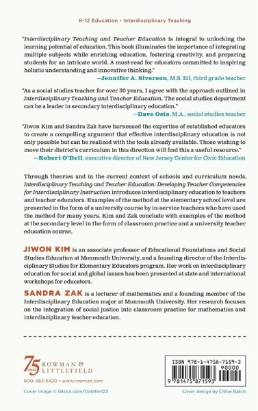 Foreword Acknowledgements Chapter 1: Introduction to Interdisciplinary Education - Jiwon Kim Chapter 2: Interdisciplinary Elementary Teacher Preparation - Jiwon Kim, Sandra Zak, and Vecihi Serbay Zambak Chapter 3: Planning an Elementary Interdisciplinary Unit - Christine Grabowski Chapter 4: Interdisciplinary Instruction Supports Thinking and Writing - Hank Bitten Chapter 5: An Interdisciplinary Approach for Secondary Schools - Hank Bitten and Mark Pearcy Chapter 6: Conclusion - Sandra Zak About the Authors and Editors