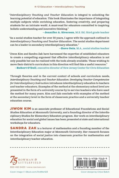 Foreword Acknowledgements Chapter 1: Introduction to Interdisciplinary Education - Jiwon Kim Chapter 2: Interdisciplinary Elementary Teacher Preparation - Jiwon Kim, Sandra Zak, and Vecihi Serbay Zambak Chapter 3: Planning an Elementary Interdisciplinary Unit - Christine Grabowski Chapter 4: Interdisciplinary Instruction Supports Thinking and Writing - Hank Bitten Chapter 5: An Interdisciplinary Approach for Secondary Schools - Hank Bitten and Mark Pearcy Chapter 6: Conclusion - Sandra Zak About the Authors and Editors