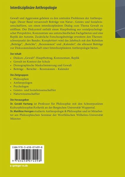 Gewalt und Aggression gehören zu den zentralen Problemen der Anthropologie. Dieser Band versammelt Beiträge von Natur-, Geistes und Sozialwissenschaftlern, um einen interdisziplinären Dialog zum Thema Gewalt zu eröffnen. Der Diskursteil enthält einen Hauptbeitrag aus sozialpsychologischer Perspektive, Kommentare aus unterschiedlichen Fachgebieten und eine Replik der Autorin. Zusätzliche Forschungsbeiträge erweitern den Themenschwerpunkt des Bandes. Komplettiert wird das Jahrbuch mit den Rubriken "Beiträge", "Berichte", "Rezensionen" und "Kalender", die allesamt Beiträge zur Diskussionslandschaft einer Interdisziplinären Anthropologie bieten.