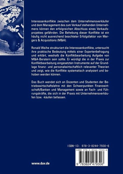 Ronald Weihe strukturiert die Interessenkonflikte, untersucht ihre praktische Bedeutung mittels einer Expertenbefragung und erklärt, weshalb die Konfliktbearbeitung Aufgabe von M&A-Beratern sein sollte. Er würdigt die in der Praxis zur Konfliktbearbeitung eingesetzten Instrumente auf der Grundlage finanz- und personalwirtschaftlich relevanter Theorien und zeigt, wie die Konflikte systematisch analysiert und behoben werden können.