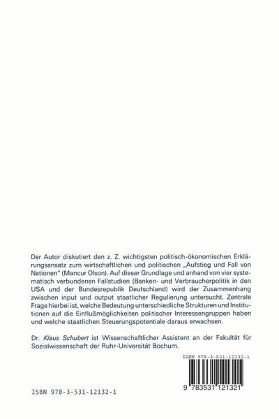 138 5. 2 Problemfelder der Verbraucherpolitik 139 5. 2. 1 Verbraucherinformation 140 5. 2. 2 Werbung 142 5. 2. 3 Wettbewerb 5. 2. 4 Preise 144 5. 2. 5 Qualität, Sicherheit und Haftung 145 149 5. 2. 6 Vertragsbedingungen 150 5. 2. 7 Konsumentenkredite Rechtsberatung und Durchsetzung individueller 5. 2. 8 Verbraucherrechte 152 5. 3 Strukturen der Verbraucherpolitik 153 5. 4 Verbraucherpolitik in der Bundesrepublik Deutschland und den Vereinigten Staaten von Amerika 156 5. 4. 1 Verbraucherpolitik in der Bundesrepublik Deutschland 157 5. 4. 2 Verbraucherpolitik in den Vereinigten Staaten von Amerika 169 5. 4. 3 Synoptischer Vergleich 177 5. 5 Vergleichende Analyse der Verbraucherpolitik 193 Teil III Die Logik staatlicher Regulation 201 Kap. 6 Strukturen, Interaktionen und policy-Ergebnis 203 Literatur 211 6 Vorwort Moderne west 1 iche Demokratien sind nicht mehr vorstellbar ohne mass ive, steu ernde und gestaltende Eingriffe der jeweiligen Regierungen. Dieses Faktum gilt gerade auch heute, da uns die politische Rhetorik vom Gegenteil, der Oberlegen heit des Allokationsmechanismus Markt, überzeugen will. Verwirrend ist jedoch die Tatsache, daß gerade die eifrigsten Verfechter dieser Rhetorik in der poli tischen Praxis vom Saulus zum Paulus werden. In welchem Maße dieser Wandel strukturelle, in den politischen Systemen moderner Demokratien angelegte- nicht individuelle - Ursachen hat, wird in dieser Studie diskutiert. Daneben werden in dieser Arbeit auch die Wirkungen staatlicher Eingriffe disku tiert.