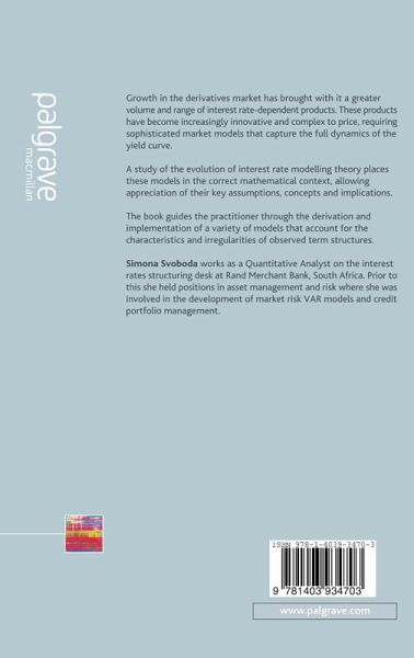 Growth in the derivatives market has brought with it a greater volume and range of interest rate dependent products. These products have become increasingly innovative and complex to price, requiring sophisticated market models that capture the full dynamics of the yield curve. A study of the evolution of interest rate modelling theory places these models in the correct mathematical context, allowing appreciation of their key assumptions, concepts and implications. The book guides the practitioner through the derivation and implementation of a variety of models that account for the characteristics and irregularities of observed term structures.