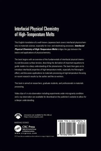 This English translation of a well-known Japanese book covers interfacial physicochemistry in materials science, especially for iron- and steelmaking processes. Interfacial Physical Chemistry of High-Temperature Melts bridges the gap between the basics and applications of physicochemistry. The book begins with an overview of the fundamentals of interfacial physical chemistry and discusses surface tension, describing the derivation of important equations to guide readers to a deep understanding of the phenomenon. The book then goes on to introduce interfacial properties of high-temperature melts, especially the Marangoni effect, and discusses applications to materials processing at high temperature focusing on recent research results by the author and the co-workers. This book is aimed at researchers, graduate students, and professionals in materials processing. Video clips of in-situ observation including experiments under microgravity condition and x-ray observation are available for download on the publisher's website to allow for a deeper understanding.