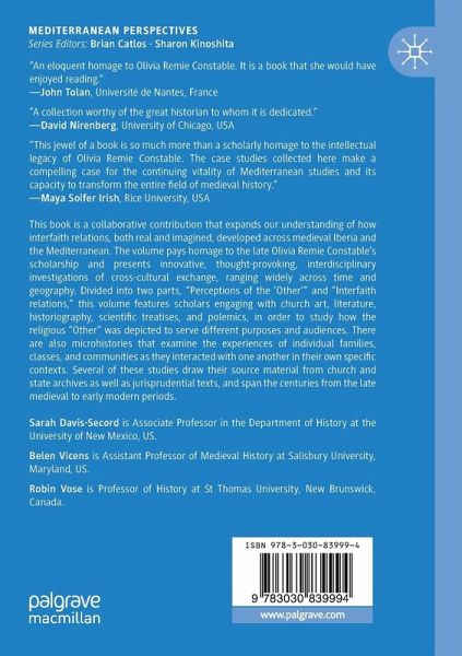 This book is a collaborative contribution that expands our understanding of how interfaith relations, both real and imagined, developed across medieval Iberia and the Mediterranean. The volume pays homage to the late Olivia Remie Constable's scholarship and presents innovative, thought-provoking, interdisciplinary investigations of cross-cultural exchange, ranging widely across time and geography. Divided into two parts, "Perceptions of the 'Other'" and "Interfaith relations," this volume features scholars engaging with church art, literature, historiography, scientific treatises, and polemics, in order to study how the religious "Other" was depicted to serve different purposes and audiences. There are also microhistories that examine the experiences of individual families, classes, and communities as they interacted with one another in their own specific contexts. Several of these studies draw their source material from church and state archives as well as jurisprudential texts, and span the centuries from the late medieval to early modern periods.
