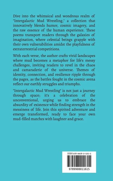 Dive into the whimsical and wondrous realm of "Intergalactic Mud Wrestling," a collection that innovatively blends humor, cosmic imagery, and the raw essence of the human experience. These poems transport readers through the galaxies of imagination, where celestial beings grapple with their own vulnerabilities amidst the playfulness of extraterrestrial competitions. With each verse, the author crafts vivid landscapes where mud becomes a metaphor for life's messy challenges, inviting readers to revel in the chaos and camaraderie of the universe. Themes of identity, connection, and resilience ripple through the pages, as the battles fought in the cosmic arena reflect our earthly struggles and triumphs. "Intergalactic Mud Wrestling" is not just a journey through space; it's a celebration of the unconventional, urging us to embrace the absurdity of existence while finding strength in the messiness of life. Join this spirited adventure and emerge transformed, ready to face your own mud-filled matches with laughter and grace.