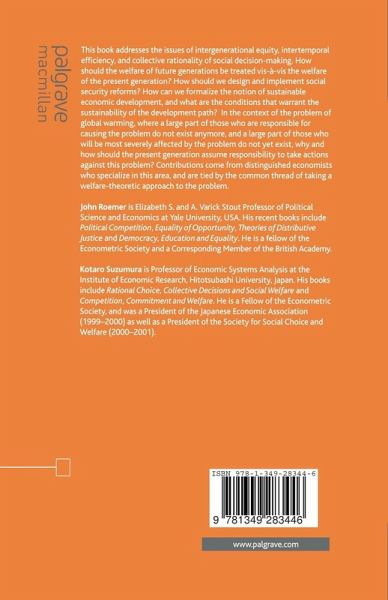 Introduction; J.Roemer & K.Suzumura PART 1: EQUITY AMONG OVERLAPPING GENERATIONS Pension Contributions and Capital Accumulation; T.Ihori Equity and Efficiency in Overlapping Generations Economies; T.Shinotsuka, K.Suga, K.Suzumura & K.Tadenuma Social Security Pensions and Interregional Equity: The Japanese Case; N.Takayama PART 2: RANKING INFINITE UTILITY STREAMS A New Equity Condition for Infinite Utility Streams and the Possibility of Being Paretian; G.B.Asheim, T.Mitra & B.Tungodden Possibility Theorems for Equitably Aggregating Infinite Utility Systems; K.Basu & T.Mitra On the Existence of Paretian Social Welfare Quasi-orderings for Infinite Utility Streams with Extended Anonymity; T.Mitra & K.Basu Pareto Principle and Intergenerational Equity: Immediate Impatience, Universal Indifference and Impossibility; Y.Xu PART 3: INTERGENERATIONAL EVALUATIONS Formal Welfarism and Intergenerational Equity; C.d'Aspremont Intertemporal Social Evaluation; C.Blackorby, W.Bossert & D.Donaldson Intergenerational Fairness; M.Fleurbaey Person-Affecting Paretian Egaliterianism with Variable Population Size; B.Tungodden & P.Vallentyne PART 4: SUSTAINABILITY AND HUMAN DEVELOPMENT Intergenerational Justice and Sustainability under the Leximin Ethic; J.Roemer Intergenerational Justice, International Relations, and Sustainability; J.Roemer & R.Veneziani Intergenerational Equity and Human Development; J.Silvestre PART 5: LONG-RUN ISSUES OF INTERGENERATIONAL EQUITY Toward a Just Savings Principle; N.Van Long Normative Approaches to the Issues of Global Warming: Responsibility and Compensation; K.Suzumura & K.Tadenuma Fundamental Incompatibility Between Economic Efficiency, Intergenerational Equity and Sustainability; N.Yoshihara Index