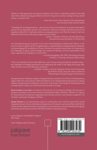 "This is an important volume that addresses a set of issues facing virtually all societies today - the challenges of bridging generations and addressing the needs of the aging and young alike, when resources are scarce and hotly contested. Bringing together data and insights from different disciplines and societies, the authors offer useful conceptual discussion about intergenerational solidarity, and also provide concrete examples of policies and practices that advance this important goal. Along the way, they also dispel some common myths and stereotypes, such as that of the overburdened and largely female "sandwich generation"; which apparently, is more resilient and positive about its responsibilities than popular media portrayals suggest. An overarching theme in this volume is the need to effectively integrate public and private sector actions, and ensure that nonprofit, community - based initiatives and broader public policies reinforce each other. This is an indispensable read for academics and practitioners alike. It should certainly inspire additional research, as the volume makes clear that this is a new field in which data and knowledge are still limited and in urgent demand. Beyond the academy, it will be especially useful for those of us who study or practice philanthropy, for social service providers, and for policymakers who face these challenges on a daily basis." - Cynthia A. Sanborn, Director, Research Center of the Universidad del Pacífico (CIUP), Lima, Peru and Co-author of Philanthropy and Social Change in Latin America