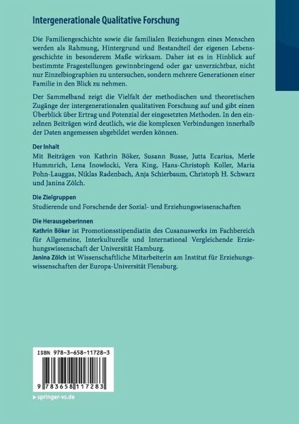 Die Familiengeschichte sowie die familialen Beziehungen eines Menschen werden als Rahmung, Hintergrund und Bestandteil der eigenen Lebensgeschichte in besonderem Maße wirksam. Daher ist es in Hinblick auf bestimmte Fragestellungen gewinnbringend oder gar unverzichtbar, nicht nur Einzelbiographien zu untersuchen, sondern mehrere Generationen einer Familie in den Blick zu nehmen.Der Sammelband zeigt die Vielfalt der methodischen und theoretischen Zugänge der intergenerationalen qualitativen Forschung auf und gibt einen Überblick über Ertrag und Potenzial der eingesetzten Methoden. In den einzelnen Beiträgen wird deutlich, wie die komplexen Verbindungen innerhalb der Daten angemessen abgebildet werden können.