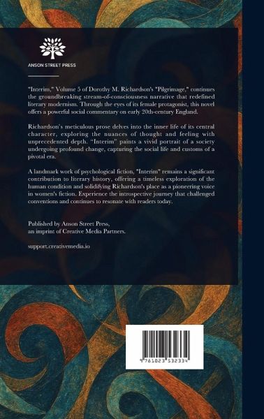 "Interim," Volume 5 of Dorothy M. Richardson's "Pilgrimage," continues the groundbreaking stream-of-consciousness narrative that redefined literary modernism. Through the eyes of its female protagonist, this novel offers a powerful social commentary on early 20th-century England. Richardson's meticulous prose delves into the inner life of its central character, exploring the nuances of thought and feeling with unprecedented depth. "Interim" paints a vivid portrait of a society undergoing profound change, capturing the social life and customs of a pivotal era. A landmark work of psychological fiction, "Interim" remains a significant contribution to literary history, offering a timeless exploration of the human condition and solidifying Richardson's place as a pioneering voice in women's fiction. Experience the introspective journey that challenged conventions and continues to resonate with readers today. This work has been selected by scholars as being culturally important, and is part of the knowledge base of civilization as we know it. This work is in the public domain in the United States of America, and possibly other nations. Within the United States, you may freely copy and distribute this work, as no entity (individual or corporate) has a copyright on the body of the work. Scholars believe, and we concur, that this work is important enough to be preserved, reproduced, and made generally available to the public. We appreciate your support of the preservation process, and thank you for being an important part of keeping this knowledge alive and relevant.
