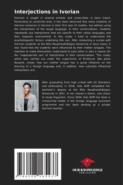 German is taught in several schools and universities in Ivory Coast. Particularly at university level, it has been observed that many students of German converse in German in their first year of studies, but without using the interjections of the target language. In their conversations, students repeatedly use interjections that are specific to their native languages and their linguistic environment. In this study, I tried to understand the psycholinguistic factors underlying this use. After conducting a survey with German students at the Félix Houphouët-Boigny University in Ivory Coast, it was found that the students were influenced by their mother tongues. The intention to make themselves understood to each other is also a reason for the 'inappropriate use' of interjections in their conversations. This study, which was carried out under the supervision of Professor Abo Justin Kouamé, shows how our mother tongue has a great influence on the learning of a foreign language and, inaddition, how culturally influenced interjections are.