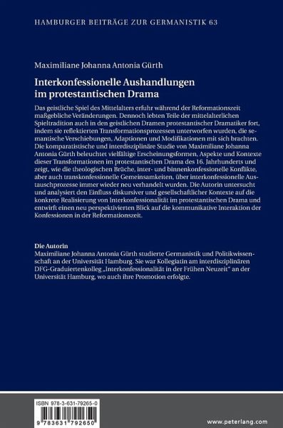 Das geistliche Spiel des Mittelalters erfuhr während der Reformationszeit maßgebliche Veränderungen. Dennoch lebten Teile der mittelalterlichen Spieltradition auch in den geistlichen Dramen protestantischer Dramatiker fort, indem sie reflektierten Transformationsprozessen unterworfen wurden, die semantische Verschiebungen, Adaptionen und Modifikationen mit sich brachten. Die komparatistische und interdisziplinäre Studie von Maximiliane Johanna Antonia Gürth beleuchtet vielfältige Erscheinungsformen, Aspekte und Kontexte dieser Transformationen im protestantischen Drama des 16. Jahrhunderts und zeigt, wie die theologischen Brüche, inter- und binnenkonfessionelle Konflikte, aber auch transkonfessionelle Gemeinsamkeiten, über interkonfessionelle Austauschprozesse immer wieder neu verhandelt wurden. Die Autorin untersucht und analysiert den Einfluss diskursiver und gesellschaftlicher Kontexte auf die konkrete Realisierung von Interkonfessionalität im protestantischen Drama und entwirft einen neu perspektivierten Blick auf die kommunikative Interaktion der Konfessionen in der Reformationszeit.