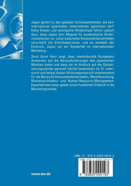 Sierk Aurel Horn zeigt, dass interkulturelle Kompetenz Antworten auf die Herausforderungen des japanischen Marktes bietet und dass sie im Hinblick auf die Globalisierungsspirale generell höchst bedeutsam ist. Er untersucht und belegt diesen Wirkungsanspruch insbesondere für die Bereiche Konsumentenverhalten, Marktforschung, Markenarchitektur und Human-Resource-Management. Experteninterviews geben einen fundierten Einblick in die Marketingrealität.