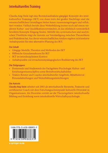 Claudia Ang-Stein legt eine Bestandsaufnahme gängiger Konzepte des interkulturellen Trainings (IKT) vor, denn trotz der großer Nachfrage sind die wissenschaftlichen Grundlagen bisher kaum zusammengetragen und reflektiert worden. Vielfach beruht diese Weiterbildung immer noch auf einem veralteten Kultur- und Qualifikationsverständnis, in das eklektisch vermeintlich bewährte Konzepte Eingang finden. Mithilfe des systematischen und analytischen Überblicks trägt die Autorin zur Verständigung zwischen Theoretikern und Praktikern bei. Aus dieser wissenschaftlichen Analyse ergeben sich konkrete Anhaltspunkte für eine alternative Planung des IKT.