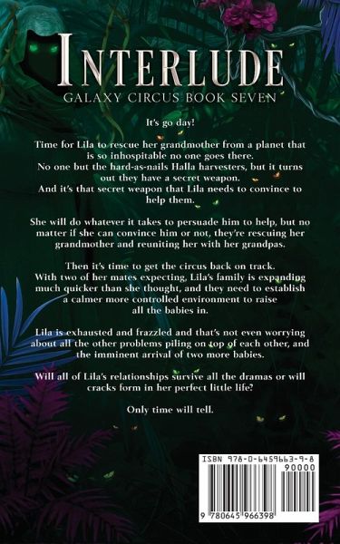 It's go day! Time for Lila to rescue her grandmother from a planet that is so inhospitable no one goes there. No one but the hard-as-nails Halla harvesters, but it turns out they have a secret weapon. And it's that secret weapon that Lila needs to convince to help them. She will do whatever takes to convince him to help, but no matter if she can convince him or not they're rescuing her grandmother and reuniting her with her grandpas. Then it's time to get the circus back on track. With two of her mates expecting, Lila's family is expanding much quicker than she thought, and they need to establish a calmer more controlled environment to raise all the babies in. But before they can return to Earth and get the tour back on track, they need to attend Vilax and dissolve Saxon's clan. Xavier has also been remanded to appear on Westalin to answer for the death of his harem members. Not to mention there are acts to hire and performers to reassure. Then there is also the problem of Agent Smith on Earth and the bombshell the Brannock dropped. Lila is exhausted and frazzled and that's not even worrying about the Una's power orb and the people that are after that. She wants to go undercover as a Madovian snake woman, but will her mates draw the line? Will all of Lila's relationships survive all the dramas or will cracks form in her perfect little life? Only time will tell.