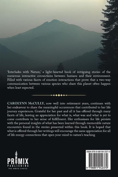 'Interludes with Nature, ' a light-hearted book of intriguing stories of the numerous interactive connections between humans and their environment. Filled with various facets of emotion interactions that prove that a two-way communication between various species who share this planet often happen when least expected.