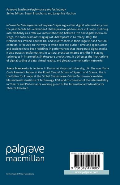 In Intermedial Shakespeare on European Stages , Aneta Mancewicz sets contemporary Shakespeare performance at the center of an emerging, "intermedial" critique of theatrical production. Rather than understanding the stage as a secondary medium for the replication of dramatic writing, Mancewicz sees contemporary Shakespeare to stage an inter-exchange between textual, live-acting, and recorded media of performance. Shakespearean drama, here, is not so much presumed as negotiated by performance, and Mancewicz engages the conceptual work of intermediation through rigorous readings of some of the most demanding of recent Continental stage productions. Tracing the theoretical work of contemporary Shakespeare performance, Intermedial Shakespeare on European Stages opens a valuable perspective on the interplay between Shakespearean drama and our changing modes and means of production. - W. B. Worthen, Barnard College, Columbia University, USA