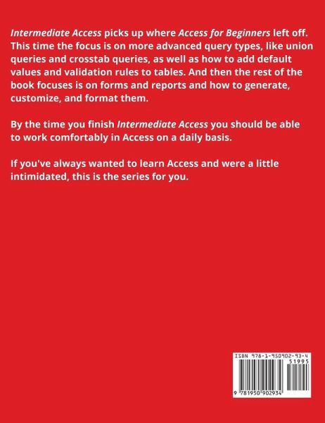 Intermediate Access picks up where Access for Beginners left off. This time the focus is on more advanced query types, like union queries and crosstab queries, as well as how to add default values and validation rules to tables. And then the rest of the book focuses is on forms and reports and how to generate, customize, and format them. By the time you finish Intermediate Access you should be able to work comfortably in Access on a daily basis. If you've always wanted to learn Access and were a little intimidated, this is the series for you.