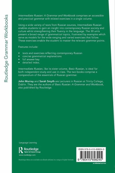 Intermediate Russian provides a reference grammar and related exercises in one volume. Varied texts from Russian sources give an insight into contemporary Russian society and culture. Features include: _ texts and exercises reflecting contemporary Russian _ concise grammar explanations _ full exercise key _ detailed index. Intermediate Russian, and its sister volume, Basic Russian, are ideal both for independent study and use in class. Together the books provide a compendium of the essentials of Russian grammar.