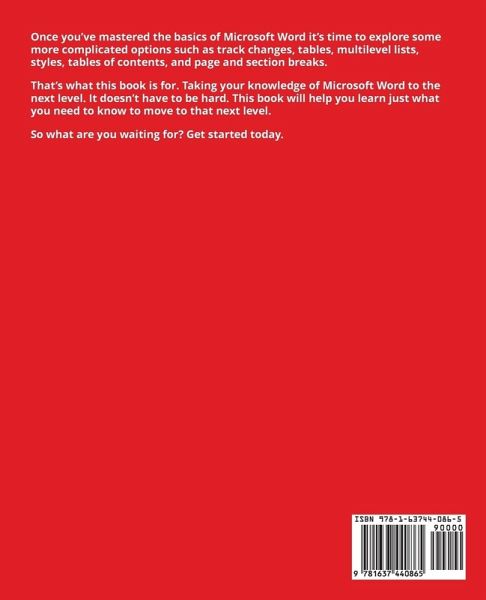 Once you've mastered the basics of Microsoft Word it's time to explore some more complicated options such as track changes, tables, multilevel lists, styles, tables of contents, and page and section breaks. That's what this book is for. Taking your knowledge of Microsoft Word to the next level. It doesn't have to be hard. This book will help you learn just what you need to know to move to that next level. So what are you waiting for? Get started today.