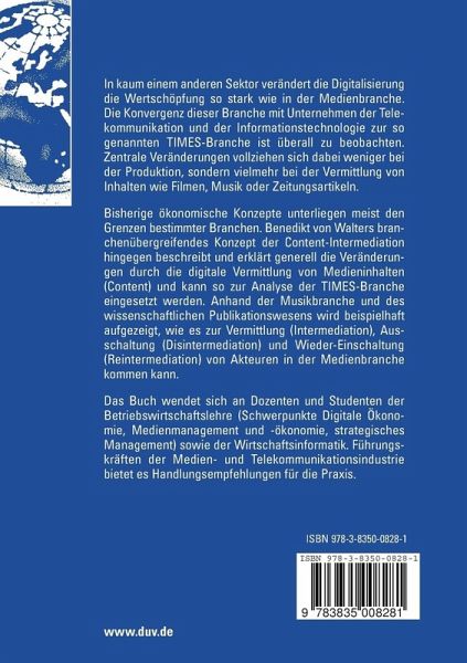 Benedikt von Walters branchenübergreifendes Konzept der Content-Intermediation beschreibt und erklärt generell die Veränderungen durch die digitale Vermittlung von Medieninhalten (Content). Anhand der Musikbranche und des wissenschaftlichen Publikationswesens zeigt er beispielhaft auf, wie es zur Vermittlung (Intermediation), Ausschaltung (Disintermediation) und Wieder-Einschaltung (Reintermediation) von Akteuren in der Medienbranche kommen kann.