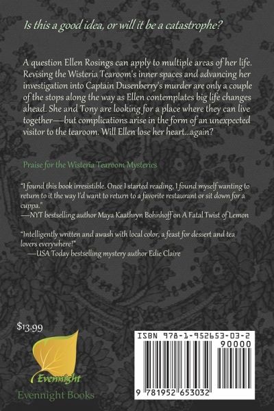 Is this a good idea, or will it be a catastrophe? A question Ellen Rosings can apply to multiple areas of her life. Revising the Wisteria Tearoom's inner spaces and advancing her investigation into Captain Dusenberry's murder are only a couple of the stops along the way as Ellen contemplates big life changes ahead. She and Tony are looking for a place where they can live together-but complications arise in the form of an unexpected visitor to the tearoom. Will Ellen lose her heart...again?