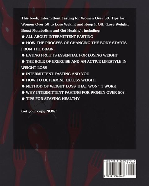 This book, Intermittent Fasting for Women Over 50: Tips for Women Over 50 to Lose Weight and Keep it Off. (Lose Weight, Boost Metabolism and Get Healthy), including: ¿ ALL ABOUT INTERMITTENT FASTING ¿ HOW THE PROCESS OF CHANGING THE BODY STARTS FROM THE BRAIN ¿ EATING FRUIT IS ESSENTIAL FOR LOSING WEIGHT ¿ THE ROLE OF EXERCISE AND AN ACTIVE LIFESTYLE IN WEIGHT LOSS ¿ INTERMITTENT FASTING AND YOU ¿ HOW TO DETERMINE EXCESS WEIGHT ¿ METHOD OF WEIGHT LOSS THAT WON'T WORK ¿ WHY INTERMITTENT FASTING FOR WOMEN OVER 50? ¿ TIPS FOR STAYING HEALTHY Get your copy NOW!