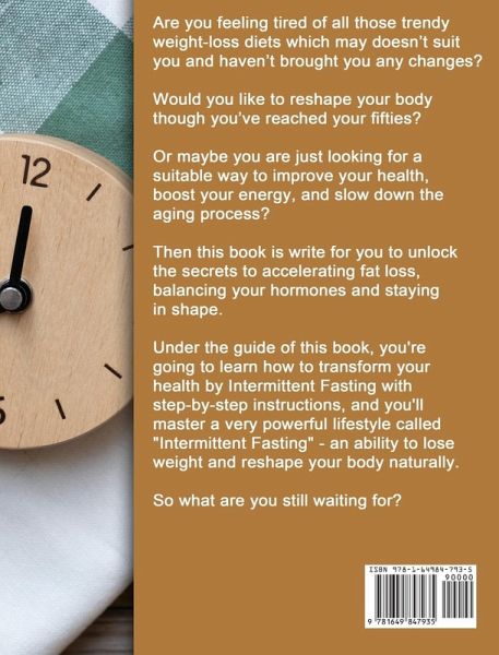 Are you feeling tired of all those trendy weight-loss diets which may doesn't suit you and haven't brought you any changes? Would you like to reshape your body though you've reached your fifties? Or maybe you are just looking for a suitable way to improve your health, boost your energy, and slow down the aging process? Then this book is write for you to unlock the secrets to accelerating fat loss, balancing your hormones and staying in shape. Under the guide of this book, you're going to learn how to transform your health by Intermittent Fasting with step-by-step instructions, and you'll master a very powerful lifestyle called "Intermittent Fasting" - an ability to lose weight and reshape your body naturally. So what are you still waiting for?