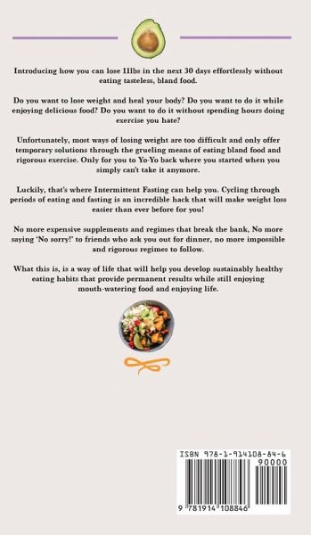 Introducing How you can lose 11lbs in the next 30 days effortlessly without eating tasteless, bland food Do you want to lose weight and heal your body? Do you want to do it while enjoying delicious food? Do you want to do it without spending hours doing exercise you hate? Unfortunately, most ways of losing weight are too difficult and only offer temporary solutions through the grueling means of eating bland food and rigorous exercise. Only for you to Yo-Yo back where you started when you simply can’t take it anymore. Luckily, that’s where Intermittent Fasting can help you. Cycling through periods of eating and fasting is an incredible hack that will make weight loss easier than ever before for you! No more expensive supplements and regimes that break the bank, No more saying ‘No sorry!’ to friends who ask you out for dinner, no more impossible and rigorous regimes to follow. What this is, is a way of life that will help you develop sustainably healthy eating habits that provide permanent results while still enjoying mouth-watering food and enjoying life. A study from the University of Illinois showed that a group of obese patients doing Intermittent Fasting lost around 3% of their body fat in just 12 weeks compared to the control group, while another study showed decreases of 4-6% after just 12 weeks! It’s time for you to get the results you deserve. Here is just a slither of what you will discover... •11 Intermittent Fasting Secrets to make the journey easier! •How to lose weight by eating more food •Supplements to supercharge your health •Think you have to eat tasteless food you hate to lose weight? Think again. •Stop wasting time spending hours doing exercise you hate, do this instead •What doctors have never told you about Autophagy •Why typical diets simply don’t work •How middle-aged men and women are losing more weight than ever while enjoying life! •The proven hunger hack for those late night cravings •5 Simple ways to lose weight faster! •The shocking truth around the obesity crisis •How to make your weight loss permanent! •The Strategy that could save you up to $150 per week- which is $7,800 a year- enough for that vacation you’ve always dreamed of •The Secret healing powers of fasting •The proven way of eating to combine with Fasting to help you lose 5lbs this month •Exactly WHY Fasting Works and How it makes Losing Weight easier than ever! And, much much more! So, even if you’ve tried every other ‘Diet’ in your life and never managed to make the results stick, this is the easiest and simplest way to lose weight AND heal your body. Even if you think you’re ‘incapable’ of weight loss, this book will show you just how wrong you are. It’s time eating and living a healthy lifestyle becomes second nature to you. So, if you want to discover the proven way to lose up to 11lbs in the next 4 weeks while healing your body and enjoying delicious food, then scroll up and click "add to cart."