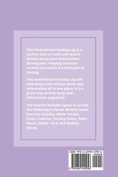 This Intermittent Fasting Journal log book is a perfect tracker for your keto, ketogenics, paleo, or any other fitness or diet program that includes fasting, that you would like to start. The inside interior of this notebook offers a place to attach your before and after pictures, so you will be able to see how you have improved. There's prompts and space to record the following: Weekly Goals Exercise Activity Water Intake Carbs Calories Fasting Hours Daily Notes Meals 1 & 2 Weekly Recap There's also a weekly recap page at the end of each week (weeks end) to record your progress including weight loss and body measurements. Also includes a place for tracking your meal you eat 2 times a day, whether it's breakfast, lunch, or dinner. Plenty of space for notes for any other important information such as blood glucose readings, sleep patterns, etc, or as a diary for journaling your feelings or mood. Writing your goals and plan in notebooks and planners will help you take charge in areas you may need help, make way better food choices, and stay on track to a new you! Also makes a great gift! This planner is simple and easy to use and designed for every day. Find what works for you and run with that, pun intended! Best of Luck! Small size of 6x9 inches is easily portable, 92 pages, 30 days, soft matte finish cover, black ink, white paper, paperback. Buy one today!
