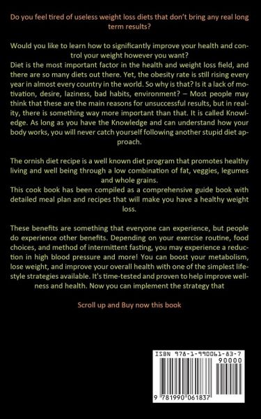 Do you feel tired of useless weight loss diets that don't bring any real long term results? Would you like to learn how to significantly improve your health and control your weight however you want? Diet is the most important factor in the health and weight loss field, and there are so many diets out there. Yet, the obesity rate is still rising every year in almost every country in the world. So why is that? Is it a lack of motivation, desire, laziness, bad habits, environment? - Most people may think that these are the main reasons for unsuccessful results, but in reality, there is something way more important than that. It is called Knowledge. As long as you have the Knowledge and can understand how your body works, you will never catch yourself following another stupid diet approach. The ornish diet recipe is a well known diet program that promotes healthy living and well being through a low combination of fat, veggies, legumes and whole grains. This cook book has been compiled as a comprehensive guide book with detailed meal plan and recipes that will make you have a healthy weight loss. These benefits are something that everyone can experience, but people do experience other benefits. Depending on your exercise routine, food choices, and method of intermittent fasting, you may experience a reduction in high blood pressure and more! You can boost your metabolism, lose weight, and improve your overall health with one of the simplest lifestyle strategies available. It's time-tested and proven to help improve wellness and health. Now you can implement the strategy that Scroll up and Buy now this book.