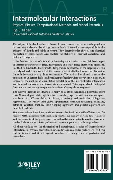 All those working on the theoretical and experimental studies of intermolecular interactions in chemistry, physics, biochemistry and molecular biology will find this text of interest and it will appeal to advanced undergraduates, graduates and researchers.