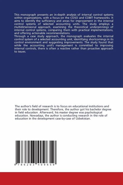This monograph presents an in-depth analysis of internal control systems within organizations, with a focus on the COSO and COBIT frameworks. It aims to identify the sufficiency and areas for improvement in the internal control systems of selected accounting units. The study employs a multidimensional approach, examining the theoretical underpinnings of internal control systems, comparing them with practical implementations, and offering actionable recommendations. Through a case study approach, the monograph evaluates the internal control system of a selected accounting unit, identifying shortcomings in its control environment and suggesting improvements. The study found that while the accounting unit's management is committed to improving internal controls, there is often a reactive rather than proactive approach to issues.