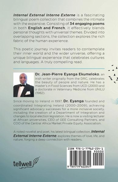 Dr. Jean-Pierre Eyanga Ekumeloko, an Irish writer originally from the DRC, celebrates the beauty of people and nature. He has a master's in Food Sciences from UCD (2000) and a doctorate in Veterinary Medicine from UNILU (1982).Since moving to Ireland in 1997, Dr. Eyanga founded and coordinated Integrating Ireland (2000-2009), achieving significant advocacy successes for a more inclusive society, including the creation of a Department of Integration and changes to local election legislation. He is now a visiting lecturer at African universities, CEO of GEE Consulting Partners, and COO of the Central Africa Market Private Equity Association.A noted novelist and poet, his latest bilingual collection, Internal External / Interne Externe, explores themes of love, life, and nature, forging a deep connection with readers.