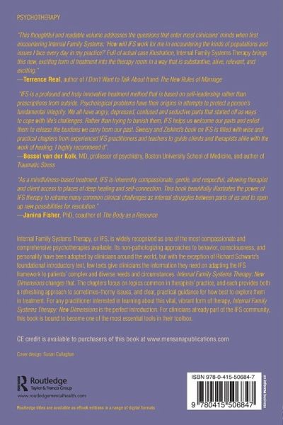 Internal family systems therapy, or IFS, is one of the fastest growing models of psychotherapy today.¿ Focused on psychic multiplicity and the healing effects of compassion, this non-pathologizing therapy has been adopted by clinicians around the world. Internal Family Systems Therapy builds on Richard Schwartz's foundational introductory texts, illustrating how the IFS protocol can be applied to a variety of therapy modalities and patient populations.Each chapter provides clear, practical guidance and clinical illustrations. While addressing questions from therapists who are exploring the model or wonder about its applicability, Internal Family Systems Therapy is also essential reading for knowledgeable IFS clinicians.