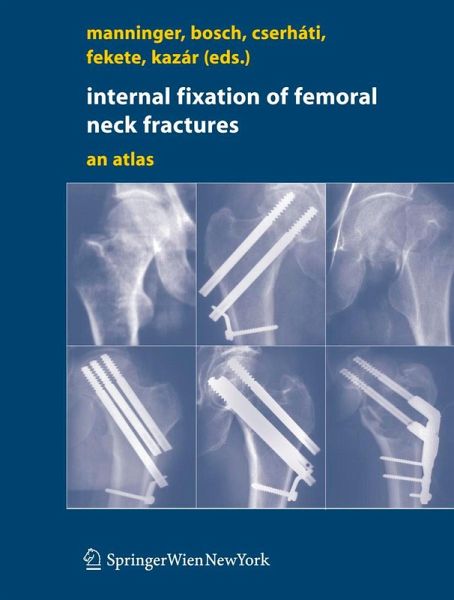 Femoral neck fractures occur primarily in the elderly population, and nowadays arthroplasty is chosen most frequently as a treatment solution. In the era of financial restrictions in health care system non-invasive internal fixation is an attractive choice, because in addition to the lower immediate costs the rehabilitation period might also be shorter. In this illustrated atlas the authors deal with epidemiological aspects, anatomical and biomechanical specialities of the given region, diagnostic and management potentials, satisfactory both for orthopaedic and trauma specialists. By means of presenting minimally invasive technique step-by-step, and their own results, the aim is to persuade the reader that the ratio of complications remarkably can be diminished by urgent surgery, based on selective indication criteria. Aspects of postoperative treatment and rehabilitation are also clarified in details. The research team under the guidance of Professor Manninger collected experiences of 50 years.