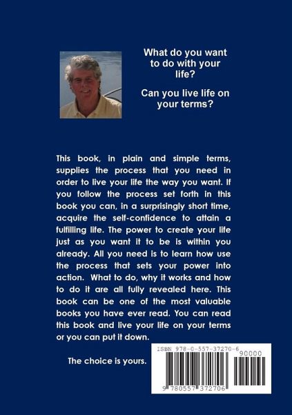 This book, in plain and simple terms, supplies the process that you need in order to live your life the way you want. If you follow the process set forth in this book you can, in a surprisingly short time, acquire the self-confidence to attain a fulfilling life. The power to create your life just as you want to is within you already. All you need is to learn how use the process that sets your power into action. This book contains that process. What to do, why it works and how to do it are all fully revealed here. This book can be one of the most valuable books you have ever read.