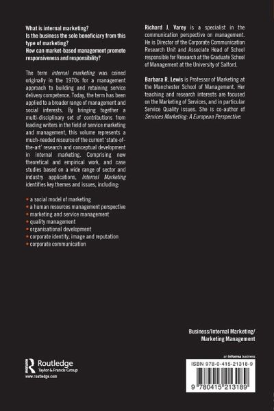 Bringing together contributions from leading writers in the field of service marketing and management, this book represents a much-needed source of current research and conceptual development in internal marketing.