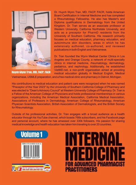 The role of the clinical pharmacist has evolved significantly in recent years, with California leading the way by establishing the first Advanced Practice Pharmacist (APh) separate license in 2017 through Bill SB493. This initiative has paved the path for pharmacists to assume expanded responsibilities and become integral members of primary care teams. In 2020, Wynn Medical Center embarked on a groundbreaking collaboration with the University of Southern California and 986 Pharmacy to establish a pioneering APh residency program aimed at training PharmD residents to become fully-fledged healthcare providers within a physician clinic setting. This comprehensive guide is designed to equip Advanced Practice Pharmacists and APh residents with a foundation of 350 common conditions encountered in primary care. Spanning across 24 chapters, this book addresses the APh profession, major disorders in internal medicine, common disorders in pregnancy and pediatrics, post-surgical and wound care, laboratory, imaging, biostatistics, and preventive measures. I extend my heartfelt gratitude to a dedicated team of international expert reviewers, editors, and students who have contributed their time, expertise, and insights to the creation of this textbook. Huynh Wynn Tran, MD, FACP, FACR Assistant Professor of Medicine, Rheumatology/Dermatology, and Pharmacy Founder/CEO of Wynn Medical Center Clinics, Los Angeles, USA