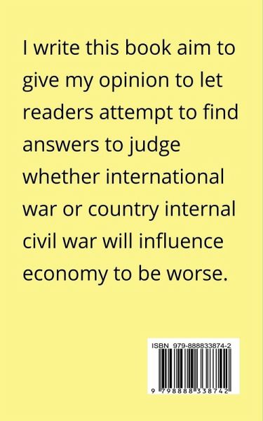 This book concerns to research how war influences any countries' economy development. In Part one , chapter one concerns what international war influences. I shall explain whether wars can impact economy threat. I shall indicate how First World War influenced Europe economy ; what US economic consequences of war are ; how can economy policy influence peace and security ; What relationship is between civil wars and economic growth; how economic impact of the war and higher military spending is. In part two, chapter two concerns the country's internal civil war, I shall explain what the relationship is between internal war and human welfare. I shall indicate how internal war influences human welfare ; whether internal civil wars can influence the country's long run economic development ; when and how can be stopped the civil internal war to influence economy growth. In my focus, I shall give my opinion to solve this question: Whether do wars bring either advantages or disadvantages or both to impact our economy growth ? I write this book aim to give my opinion to let readers attempt to find answers to judge whether international war or country internal civil war will influence economy to be worse.