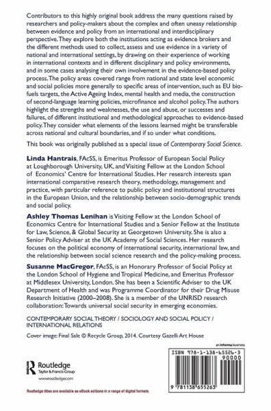 Foreword 1. Evidence-based policy: exploring international and interdisciplinary insights 2. Institutionalising evidence-based policy: international insights into knowledge brokerage 3. Using evidence to improve policy and practice: the UK What Works 4. Evidence-based policy as iterative learning: the case of EU biofuels targets 5. Creating and using the evidence base: the case of the Active Ageing Index 6. Media and evidence-informed policy development: the case of mental health in Australia 7. Using evidence to reconstruct second-language learning policies in Estonia 8. CPB Netherlands Bureau for Economic Policy Analysis: Dutch (economic) policy-making 9. Evidence and the policy process from an Indian perspective 10. (Mis)use of evidence in microfinance programming in the global south: a critique 11. Evidence and alcohol policy: lessons from the Italian case 12. Evidence-based research, epidemiology and alcohol policy: a critique