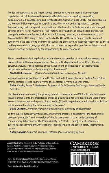 The idea that states and the international community have a responsibility to protect populations at risk has framed internationalist debates about conflict prevention, humanitarian aid, peacekeeping and territorial administration since 2001. This book situates the responsibility to protect concept in a broad historical and jurisprudential context, demonstrating that the appeal to protection as the basis for de facto authority has emerged at times of civil war or revolution - the Protestant revolutions of early modern Europe, the bourgeois and communist revolutions of the following centuries and the revolution that is decolonisation. This analysis, from Hobbes to the UN, of the resulting attempts to ground authority on the capacity to guarantee security and protection is essential reading for all those seeking to understand, engage with, limit or critique the expansive practices of international executive action authorised by the responsibility to protect concept.