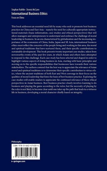 This book addresses an essential need felt by many who seek to promote best business practices in China and East Asia - namely the need for culturally appropriate instructional materials (basic information, case studies and ethical perspectives) that will allow managers and entrepreneurs to understand and embrace the challenge of moral leadership in business. In an era characterized by globalization and the increasing importance of the economies of China, India, Japan and SE Asia, international business ethics must reflect the concerns of the people living and working in this area, the moral…mehr