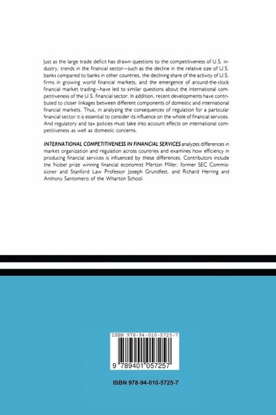 financial markets suggests that factors such as differences in capital requirements, limi tations on size or on the range of financial activities in which firms can engage, govern ment guarantee arrangements for deposits or payments, and reporting or disclosure requirements can have important effects on the efficiency of industrial and commercial firms and thus on the international competitive positions of major sectors of the U.S. economy. Regulatory and tax policies must therefore take into account effects on inter national competitive positions in addition to domestic concerns. The articles in this issue analyze differences in market organization and regulation across countries and examine how efficiency in producing financial services is influenced by these differences. These articles were presented and discussed at a conference sponsored by the Amer ican Enterprise Institute in Washington, D.C., on May 31 and June 1, 1990. This confer ence on International Competitiveness inFinancial Services brought to the attention of Washington policy officials these analyses by leading scholars in finance. Publication of these studies and critiques in the Journal of Financial Services Research is intended to stimulate further interest in research on these important issues.