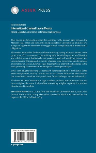 This book puts forward proposals for solutions to the current gaps between the Mexican legal order and the norms and principles of international criminal law. Adequate legislative measures are suggested for compliance with international obligations.
