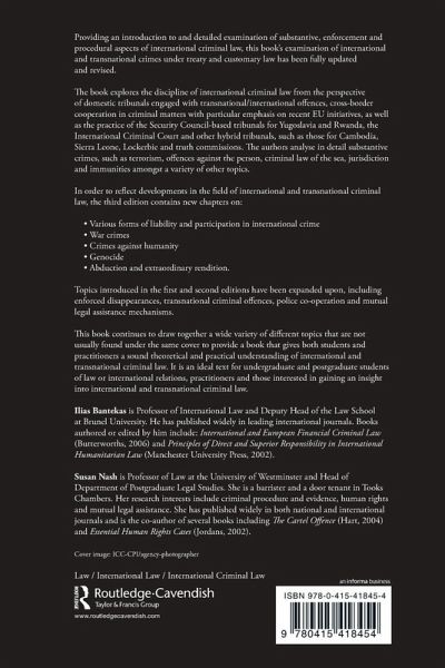 Providing an introduction to, and detailed examination of substantive, enforcement and procedural aspects of international criminal law, this book's examination of international and transnational crimes under treaty and customary law has been fully updated and revised.
