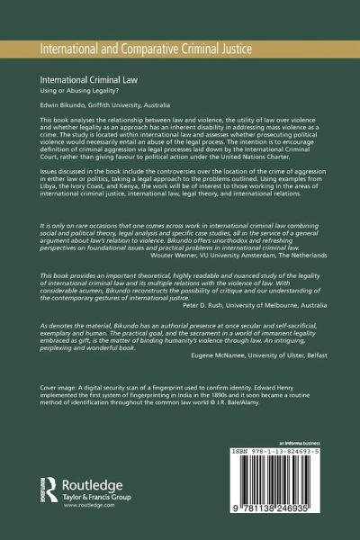 This book analyses the relationship between law and violence, the utility of law over violence and whether legality as an approach has an inherent disability in addressing mass violence as a crime. The study is located within international law and assesses whether prosecuting political violence would necessarily entail an abuse of the legal process. The intention is to encourage definition of criminal aggression via legal processes laid down by the International Criminal Court, rather than giving favour to political action under the United Nations Charter. Issues discussed in the book include the controversies over the location of the crime of aggression in either law or politics, taking a legal approach to the problems outlined. Using examples from Libya, the Ivory Coast, and Kenya, the work will be of interest to those working in the areas of international criminal justice, international law, legal theory, and international relations.