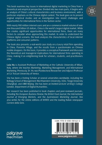 With nearly 900 million internet users and an e-commerce market volume of over one thousand billion US dollars, China is the world's largest digital market. While this creates significant opportunities for international firms, there are many factors to consider when approaching this market. In order to understand the Chinese digital scenario, the book analyzes the characteristics of local internet platforms and consumer patterns.