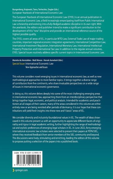 This volume considers novel emerging issues in international economic law, as well as new methodological approaches to more familiar topics. It brings together a diverse range of contributors from five continents, who share invaluable perspectives on a wide range of issues in international economic governance. In doing so, this volume delves deeply into some of the most challenging emerging areas in international economic law, approaching them from an interdisciplinary perspective that brings together legal, economic, and political analysis. Intended for academics and practitioners at all stages of their careers, many of the areas considered in this volume are either entirely new or are being revisited after periods of dormancy. It is our hope that these contributions will yield fresh insights into these new and "classic" areas of IEL. We consider diversity and inclusivity foundational values in IEL. The wealth of ideas showcased in this volume present us with an opportunity to appreciate different facets of originality and rigour in legal academic writing, further highlighting the range of methodological and stylistic preferences of emerging legal scholars in IEL. In June 2022, forty emerging international economic law scholars were selected to present their papers at PEPA/SIEL, where they received feedback from senior members of the SIEL community and beyond. The discussions were lively, stimulating and enriching, leading the editors of this volume to propose putting a selection of the papers into a published book.