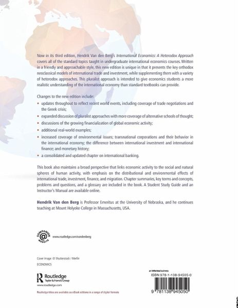 Now in its third edition, Hendrik Van den Berg's International Economics: A Heterodox Approach covers all of the standard topics taught in undergraduate international economics courses. Written in a friendly and approachable style, this new edition is unique in that it presents the key orthodox neoclassical models of international trade and investment, while supplementing them with a variety of heterodox approaches. This pluralist approach is intended to give economics students a more realistic understanding of the international economy than standard textbooks can provide.